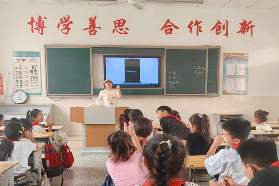 实践团成员围绕学生心理健康对周庄小学老师进行采访