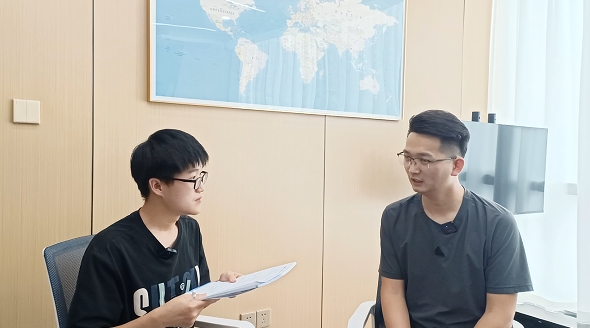 随即,志愿者以企业的发展历程为起点展开了采访。企业法人代表于磊打开了话匣子,企业初期因为疫情原因,线上办公造成的沟通困难以及资金流回拢慢给了他很大压力,好在有政策的扶植,竞争对手少,同年的留学生数量仍在增长等有利条件,使得企业有了较大的上升空间。目前,服务于学生和院校的小程序刚刚上线,利用多个平台进行内容发布和直播推广的方面也有了起色,未来将优化服务,做出APP,打造出完整的一套体系,方便学生获得更好的咨询,更方便的申请,更放心的入学。