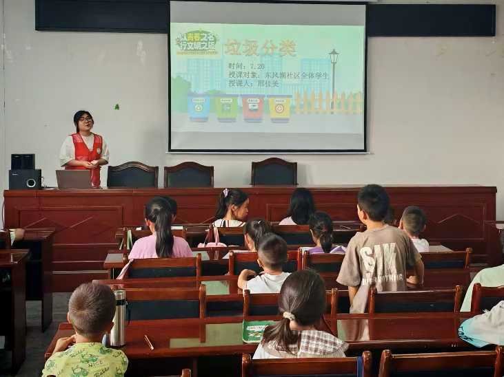 垃圾分类是文明的重要表现。7月20日,服务队开展了“垃圾分类,文明出行”的主题宣讲会,服务队队员邢佳美首先向学生们展示可回收垃圾、不可回收垃圾以及厨余垃圾等不同垃圾桶上的标志,以生动简明的语言讲解垃圾的分类标准,随后列举易拉罐、破旧的衣服以及废旧的书本的例子,帮助学生们更好地了解垃圾分类的知识,期间,服务队队员邢佳美通过提问和讨论的方式,进一步提高学生们垃圾分类的意识和能力,引导学生们自觉培养节约意识,养成良好的文明习惯,最后服务队队员邢佳美与学生共同开展“猜猜这些是什么垃圾”课堂游戏,以寓教于乐的教学方式,深化学生们的环保意识,提高学生们的文明素质。