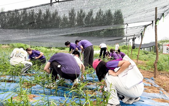 7月9日清晨,团队成员前往众得利农场,走进田间地头,村民们介绍了生姜的生长习性和除草的注意事项。成员们每人认领一垄,参与除草工作。在劳作中,大家不仅学会了如何区分生姜与杂草,更深刻体会到了农业生产的辛勤与不易。随后,团队来到寿光市首航果蔬专业合作社,参观了解现代农业温室的发展及现代技术的种植模式。