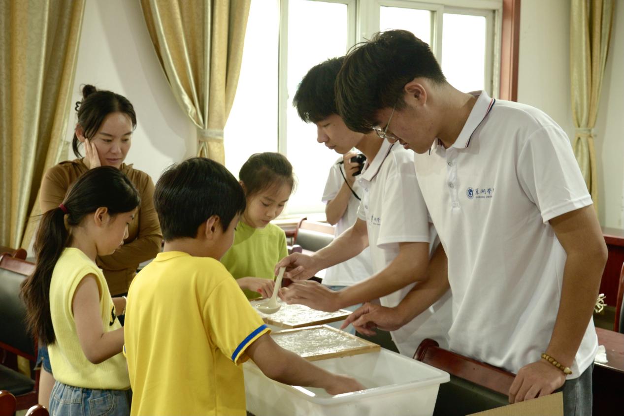 图为团队成员教小朋友做纸笺 陶心雨摄