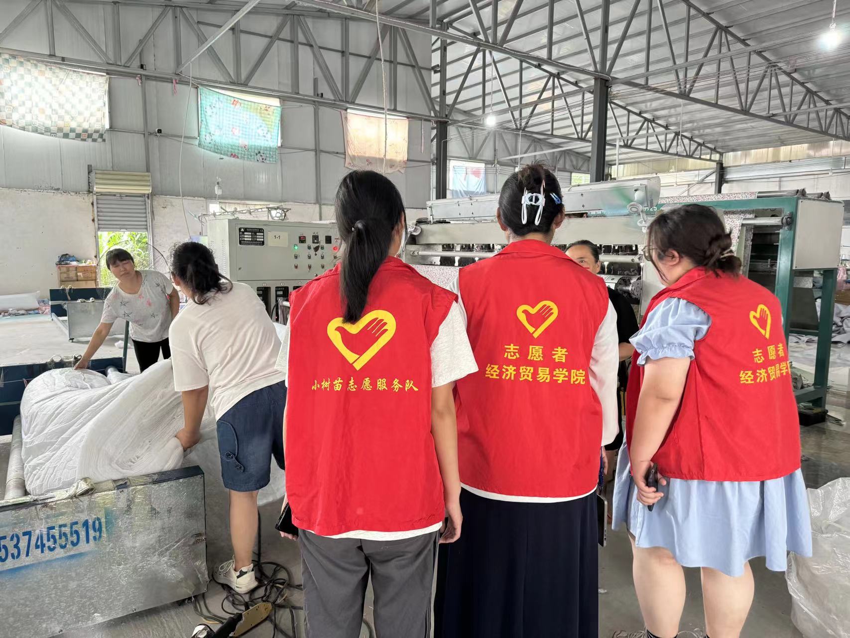 7月7日上午,团队成员一行来到许昌市建安区张宋村进行参观学习。张宋村以香油、纺织产业出名,这两大产业为其带来巨大的收益的同时也解决了部分村民尤其是妇女的就业问题。为了切实了解张宋村的发展成果,实践团队成员们进入纺织加工厂进行实地参观,详细观看了布料的加工过程,切实感受发到了产业振兴给农村发展带来的巨大作用。