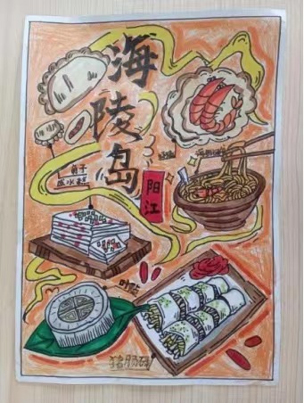 在所有学生展示的作品中,既包括采用一类资源为主题以集中体现阳江特色文化的形式,也有囊括各种景点以展示阳江丰富文旅资源的作品。内容选择上,既有猪肠碌、咸水糕等阳江特色美食,也有海陵岛、东平大澳渔村、珍珠湾等海洋旅游资源,更有漆艺、风筝等非遗技艺。多种多样的作品百花齐放,利于从多个角度诠释对于家乡文化的理解,展现阳江这座城市的魅力。