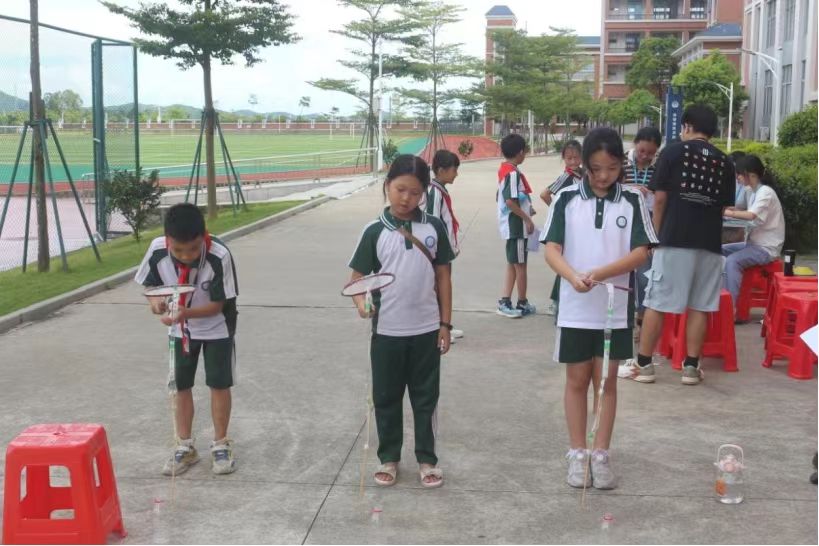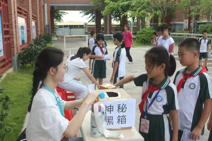 随着夏日的脚步逐渐临近,华南师范大学书画协会流墨实践服务队于2024年7月19日在广东省阳江市南华实验学校举办了一场主题为“趁盛夏,一起出发吧!”的夏日游园会活动,结合体育、语文等多学科的互动游戏方式,培养学生全方位的审美素养,促进学生在自由游玩的过程中,深入体验美的内涵,激发他们对美的感知、欣赏和创造能力。同时,通过采取团队与个人的游戏形式,增强学生的团队协作精神和竞争意识。