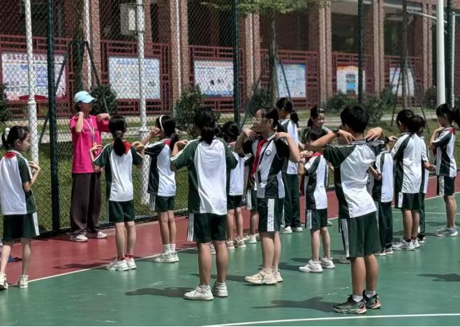 体育系列课程的主讲人是梁思敏和邓涣枫,在体育系列课程中开展了“跃动篮球”、“运动损伤”和“趣味运动”这三门课程。在跃动篮球的课程中她选择了练习篮球基础动作技术+单挑比赛为教学形式来开展篮球的兴趣引导教学,引发学生对篮球的兴趣与运动动机。在课上她带领学生一同进行练习,边示范边讲解,并告知学生各个技术动作的要领与细节,在学生练习过程中巡视及时纠正错误,在课后学生们都表达了希望能够进一步进行后续教学,在跃动篮球中欢乐的篮球基础教学与单挑比赛在整个炎热的酷暑多了一份专属于篮球的趣味。在运动损伤的课程中她选择了通过举例说明日常生活中常见的运动损伤,调动学生的积极性。让学生可以更好地了解运动损伤的分类、原因、常见部位、预防和处理方法,以及应该避免的误区。在日常生活和运动中,帮助学生树立正确的运动观念,掌握运动损伤预防与处理的专业知识和技能,提高运动安全意识和应对能力,保护自己的身体健康,享受健康安全的体育活动。在趣味运动课程中,主讲人选择了休闲娱乐类型的体育运动方式来进行趣味课的讲授。“趣味运动”是以体育运动的形式开展游戏的趣味教学,最终达到增强学生体质,提高学生对运动兴趣的授课目的。