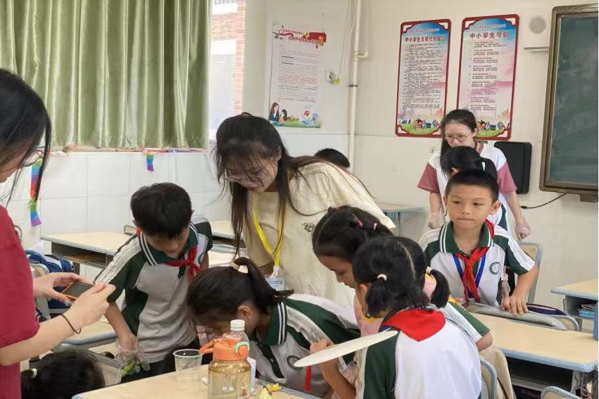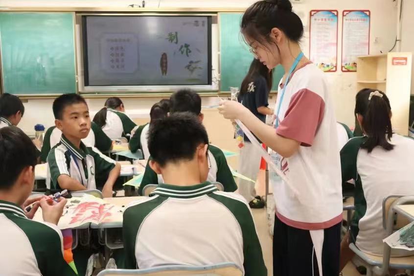 7 月 13 日至 7 月 26 日,华南师范大学书画协会流墨实践服务队与阳江市南华实验学校共同举办“盛夏启航,流墨向阳”线下夏令营暑期社会实践活动。为响应“送经典到基层”的号召,传播阳江市当地特色文化,增进对阳江非遗文化的认识,助力文化传承和发展,流墨队艺体组以南华实验学校一至七年级学生为对象,组织开展了阳江非遗文化系列课程。