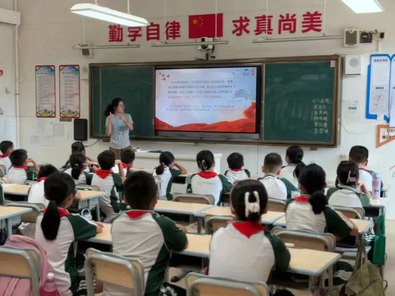 在红色边防讲解课堂中,孙乐以国家地理知识导入课堂。从国土面积到中国海岸线全长,学生们开动脑筋,举起手来积极与教师抢答,展现了学生们丰富的知识储备。