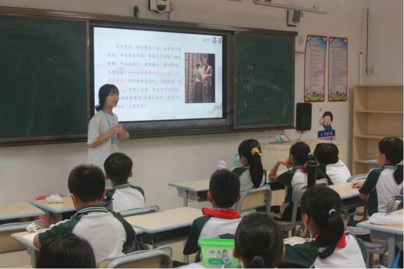 在红色家书讲解课堂,罗镕怡围绕“红色”“家书”等关键词向学生提问,鼓励学生分享自己理解中的“红色家书”。她先从时代背景出发,向学生展示红色家书产生的历史原因。经过之前红色历史的学习,学生们对于红色家书的理解更加深刻与准确,积极回答老师的问题。