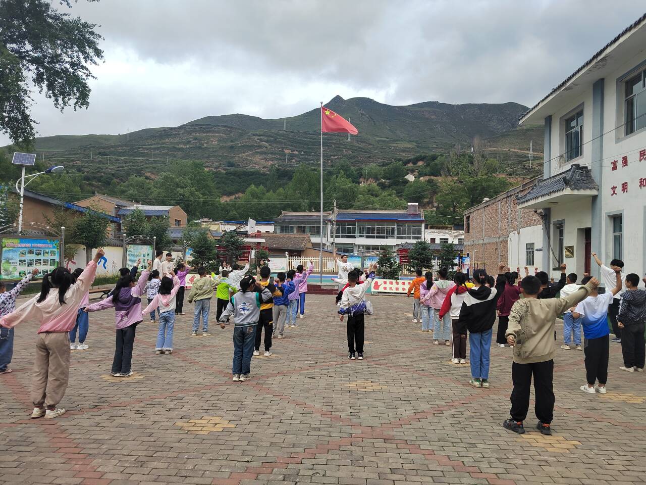 早上八点左右队伍抵达漳县,我们被这里的自然风光所吸引,四周环绕的青山仿佛是大自然为这片土地筑起的绿色屏障。然而,我们也深知,在这美丽的背后,山区的孩子们可能面临着教育资源相对匮乏的困境。我们此次实践的目的,就是要为这里的孩子们带来知识、欢乐和希望。