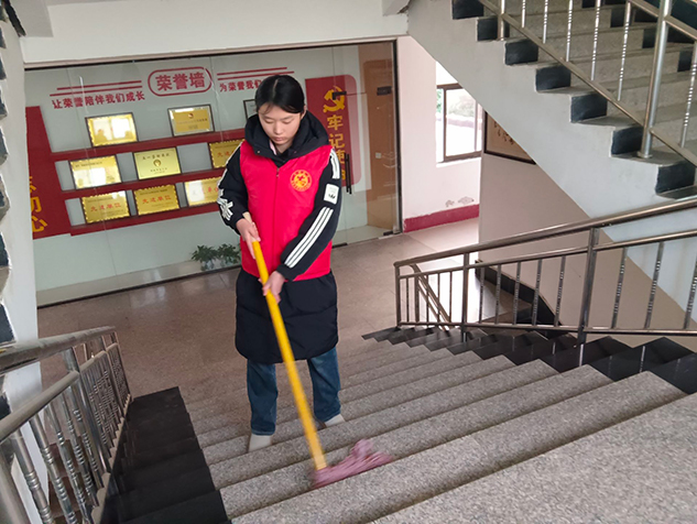 图为实践团成员在拖楼梯