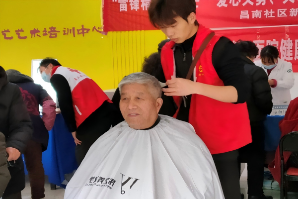 与此同时,活动大厅内同样热闹非凡。志愿者在其间忙碌穿梭,协助社区工作人员维持秩序,耐心地为前来参加活动的老党员们登记信息,引导他们依次进行理发、测量血压、检测视力等免费健康服务项目。志愿者热情的指引、细心的照料,让每一位老党员都倍感安心与舒适。
