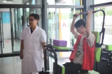 最后,实践团前往康复训练中心,在明亮通透的康复训练区,实践团成员端坐于康复器械前,双手握住黑色把手,在医护人员的指导下,缓缓发力完成拉伸动作。医护人员紧盯其动作轨迹,适时提醒“背部挺直,感受肩胛发力” 。这种“代入式体验”,让团队跳出“旁观者”身份:从握把的舒适度,到发力时的阻力反馈,再到康复动作与指引标识的匹配度,甚至座椅对不同体型的贴合度,都被纳入观察维度。这些从“使用者视角”捕捉的细微痛点,为后续优化康复设备与服务流程,获取了很多具体数据 。