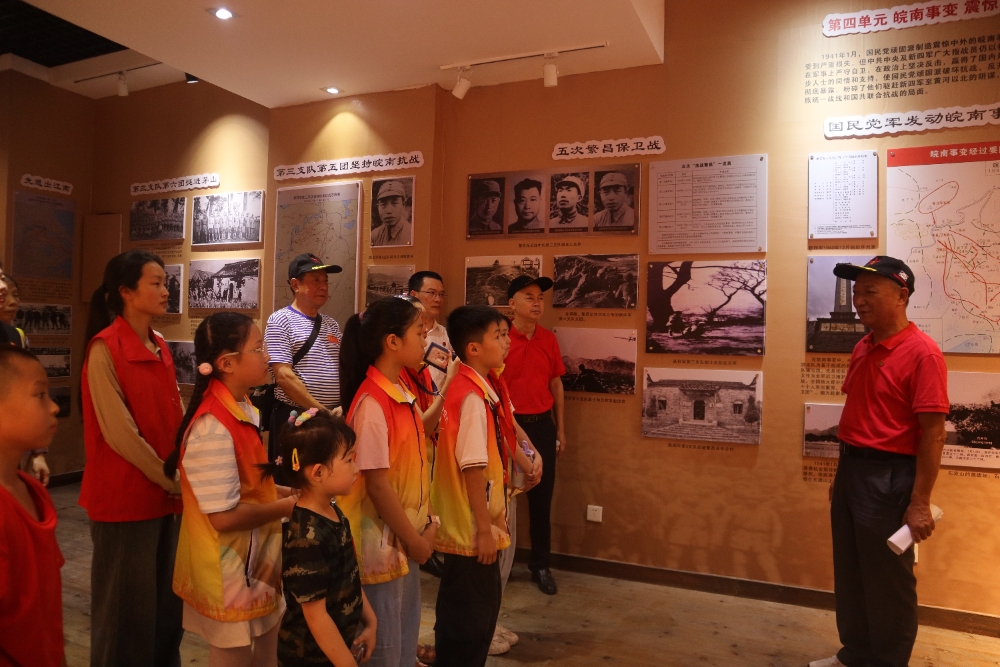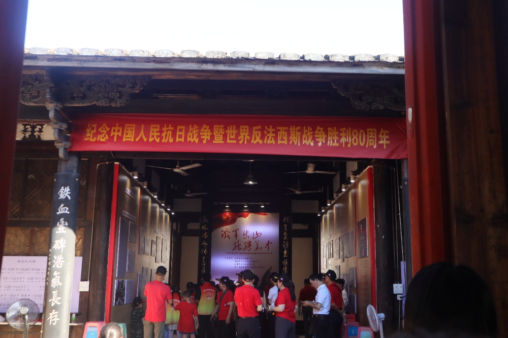 在新四军旧址,实践队员们赶上了纪念中国人民抗日战争暨世界反法西斯战争胜利80周年的活动。活动现场,他们静静站在一旁,认真聆听前辈们的历史故事。在互动环节里,队员们积极与前辈们交流沟通,深切体会到了新四军在艰苦卓绝的环境中坚守抗战、英勇拼搏的精神内涵。
