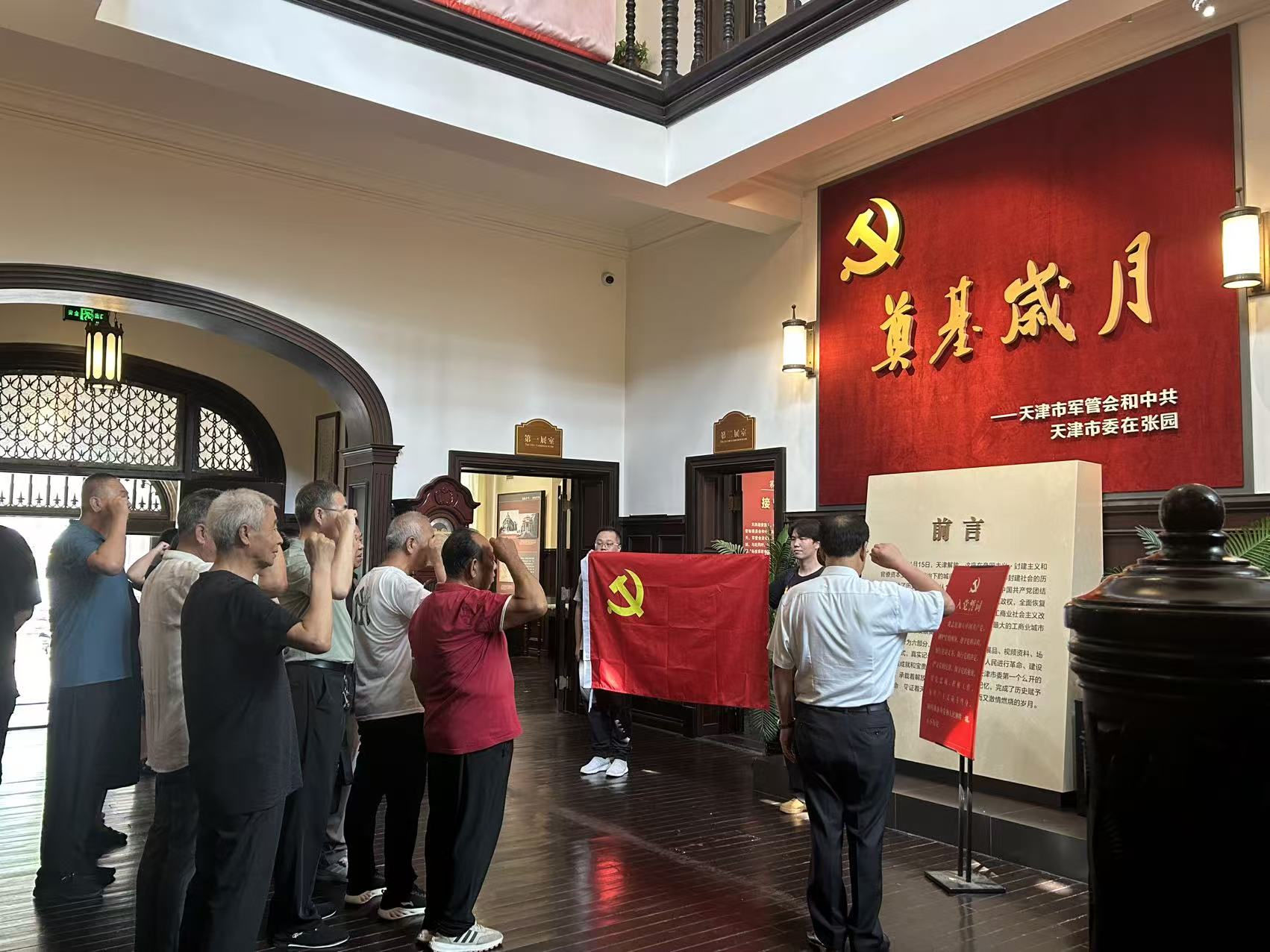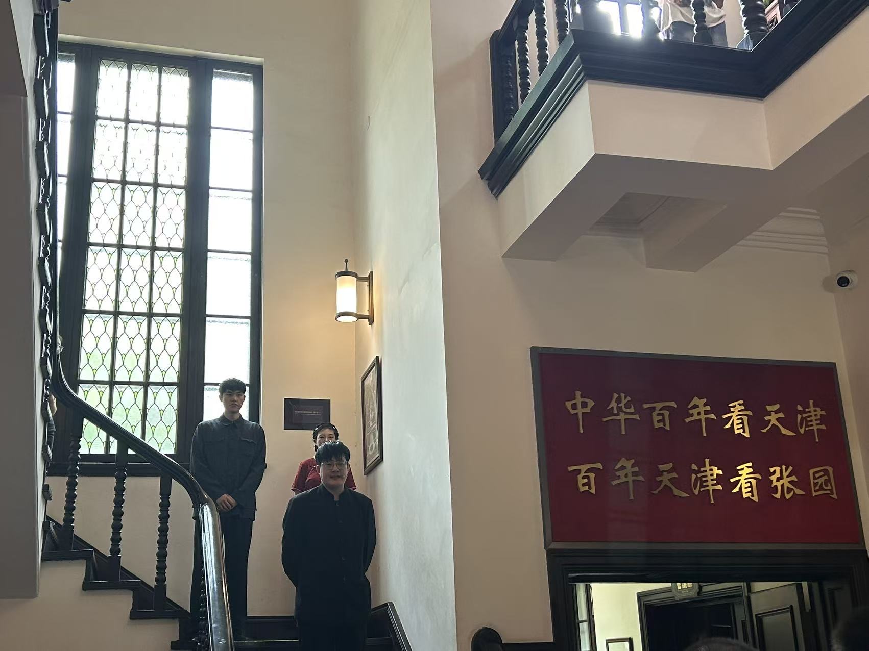 怀着崇高的敬意,实践队员们踏上了前往张园的行程。坐落于鞍山道的张园,既是清末民初诸多重要事件的见证地,亦是当下沉浸式党课的热门体验场所。恰见一群精神矍铄的老者面向党旗庄严宣誓,其铿锵誓言激荡人心,尽显对信仰的执着。这座砖木结构的小楼,承载着厚重的历史记忆:它曾回荡着孙中山先生“天下为公”的壮志呐喊,也铭刻下溥仪沦为伪满傀儡的屈辱过往。转角展柜中,孙中山先生离津赴京时与于方舟、江浩等志士的合影,更将那段风云岁月具象化。张园的浓厚红色氛围,让队员们对红色基因的内涵有了更为深切的体悟。作为新时代的青年,当以行动传承红色血脉,将其融入日常言行,在践行中为中华民族伟大复兴的中国梦添砖加瓦,这既是使命所在,亦是青年担当的生动诠释。