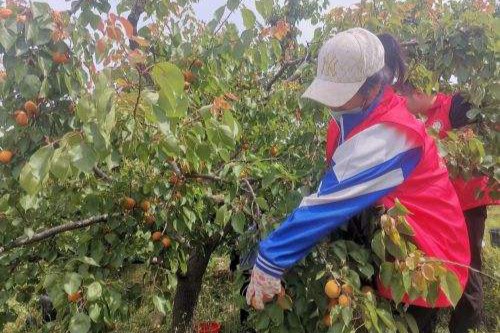 图为实践队员在杏子林采摘杏子 大学校园网通讯员 梁悦悦 供图