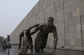 先是围绕在建筑旁的水上浮雕,他们无声的站在那,就站成了一段活生生的民族苦难史。那个仰望苍天、无声落泪的母亲;那少年背着被炸死的奶奶亡命奔突;那个男人携着自己八十多岁的老母亲……他们都没能逃过恶魔的烧杀奸淫!
