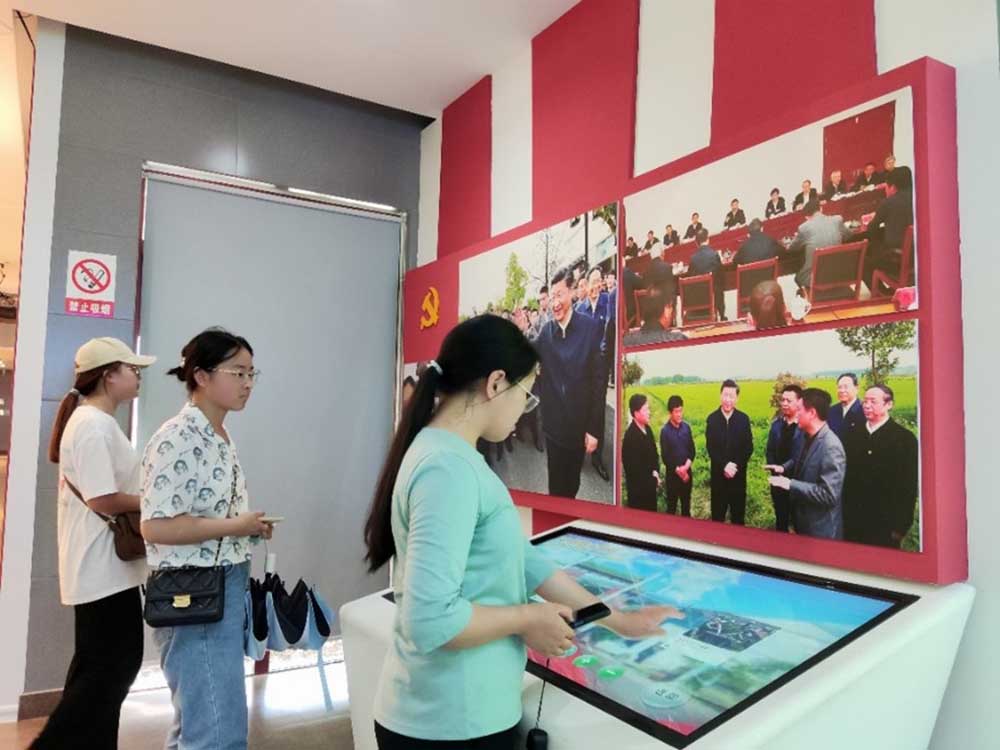 图为实践队员们参观沈浩同志先进事迹陈列馆