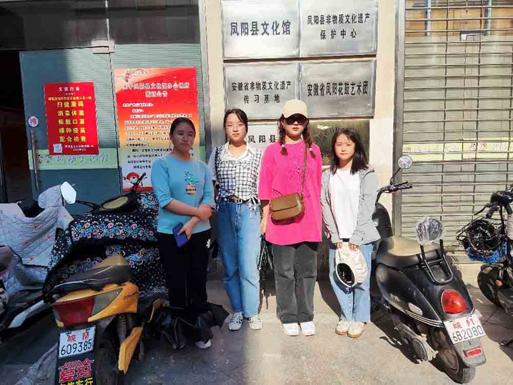 图为实践队员参观凤阳县文化馆,了解凤阳花鼓的历史由来。