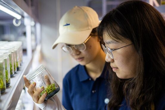 参观完种植基地,杨总经理提出带我们去看看他们和中国科学院合作共建的研究室。在研究室里,杨总经理向我们一一介绍不同阶段的独蒜兰的培养皿——从没有生命力的小种子到绿意盎然的幼苗,玻璃瓶之中是迸发的生命力,玻璃瓶之外是科学技术的飞跃发展和乡村振兴的希望!看着研究室里整齐排列的培养瓶,我打心底里觉得敬佩,敬佩于科研人员攻克一个个课题背后付出的艰辛,敬佩于这些艰辛付出背后收获的近千亩的壮观的种植基地!