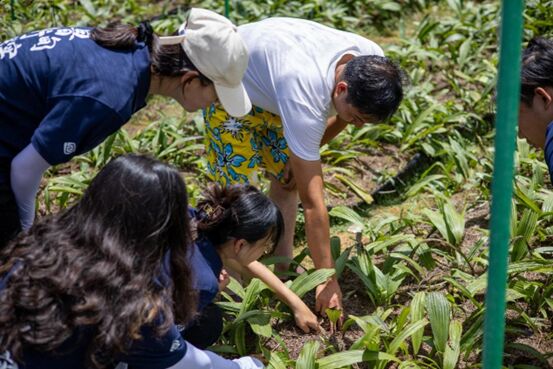 图为杨玉凡总经理为实践队员讲解独蒜兰可药用部分。