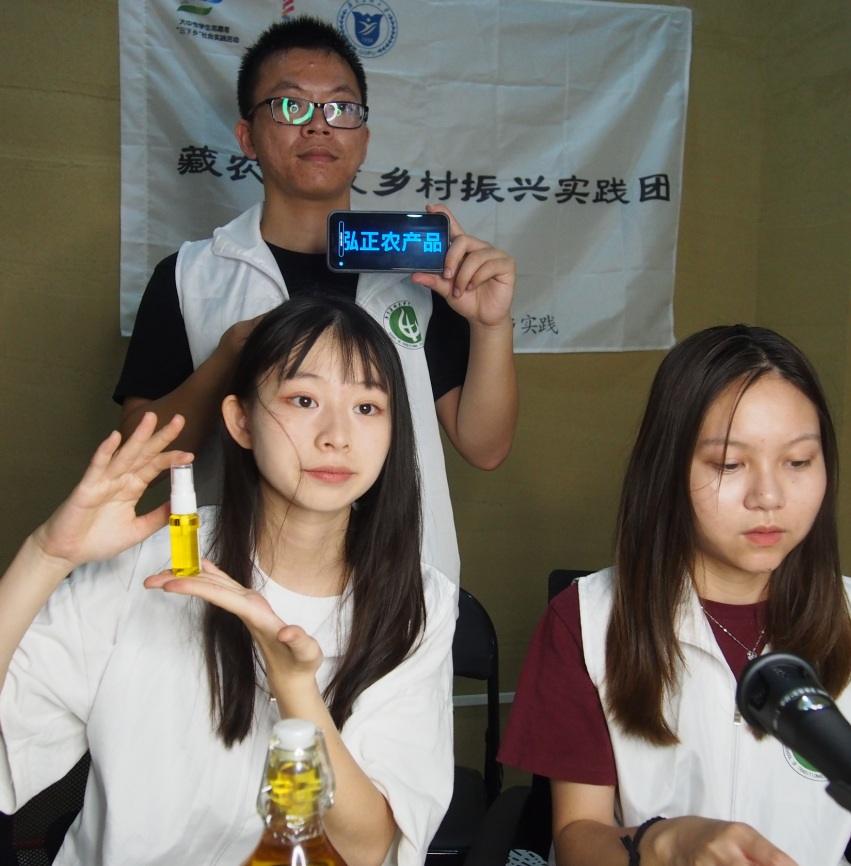 图为团队成员进行电商直播宣传山茶油。中国青年网通讯员 何桦燊 摄