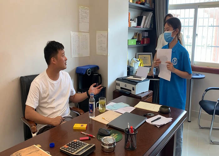 图为团队成员与小微企业创始人交流