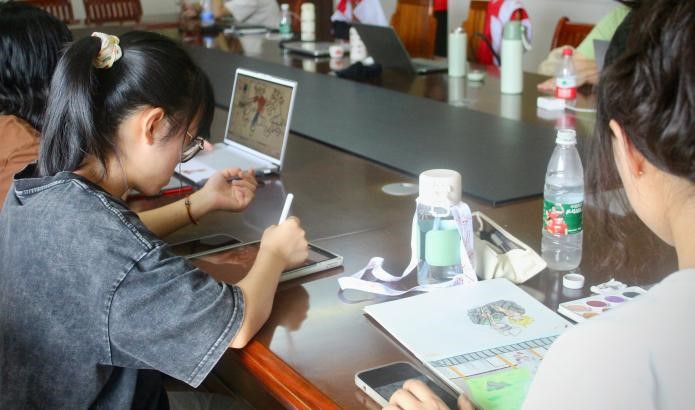 (图为团队在创作工作。中国青年网通讯员吴嘉骏 摄)