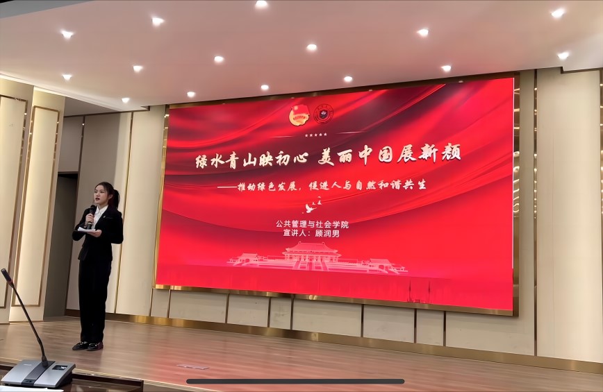 观察团成员在调研过程中,充分感受到了红色精神在徐州绿色转型道路上的巨大作用,表示要学习徐州人民不畏艰难、艰苦奋斗的宝贵精神。团队成员在学习贯彻二十大精神的基础上,结合徐州绿色转型实践,精心策划了一场主题团课,向学校师生开展“绿水青山映初心,美丽中国展新颜”主题宣讲。