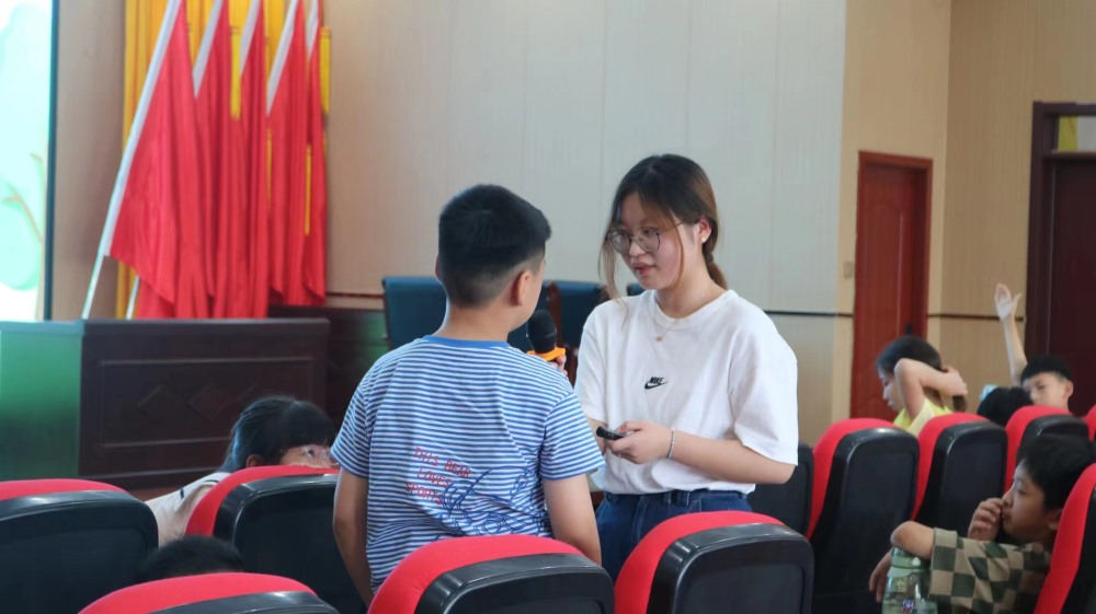 看到台上的思思老师讲的如此流畅自如,我不禁为接下来自己的上课而感到紧张和担心,心里一直很忐忑。当我站在讲台上时,看到孩子们那一张张可爱纯真的小脸蛋,心中的紧张和顾虑舒缓了很多。他们会争先恐后地回答我提出的问题,他们会认真聆听我讲的内容,他们会为没有被叫到朗读而感到沮丧失落......在这次支教活动中我教的是红色党史教育课和环保小课堂,孩子们对党史的了解程度是让我有一些出乎意料的,每个人都在积极融入课堂积极思考中。我认为党史教育课堂的开设是很有必要的,可以让孩子们熟知我国一些重大事件点,例如:中国共产党的成立、红军长征、新中国的成立、改革开放等。带领学生们感受建团百年的峥嵘岁月,深入学习党史,继承先辈遗志,培养红色精神,汲取向上力量,坚定学生们的爱国心、报国情、强国志,奋进新征程。环保小课堂对于孩子们来讲可能更容易理解更感兴趣,因为这是与他们生活息息相关的,教导他们生活中该怎么帮助“地球母亲”。在游戏过程中,我真切感受到了孩子们的热情,互相协作帮助的团队精神,这让我对课堂和之后的教学都充满了信心,不仅是对自己的自信,也是对孩子们的信任。