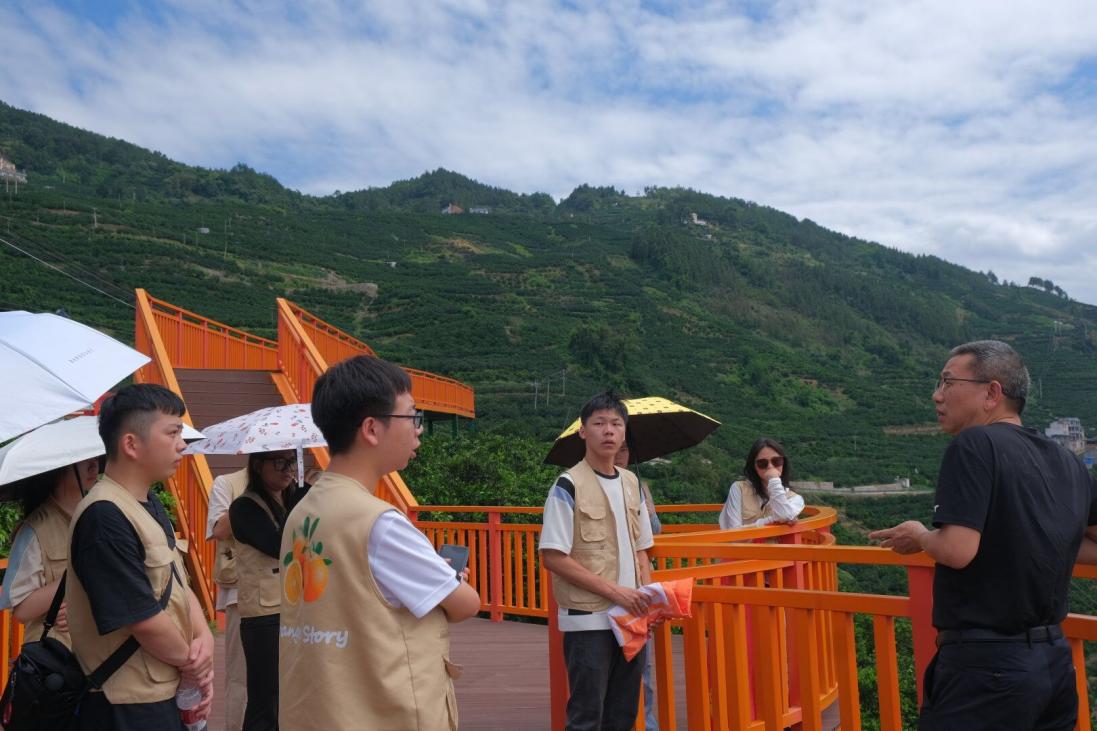 图为在吒溪河乡村振兴示范区,实践队员了解秭归脐橙区域经济发展新模式。