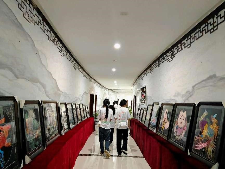 (图为实践队员参观布贴走廊。 周雅惠 供图)
