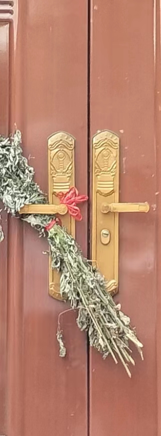 在当日,实践队员也探访过其他村民,了解到了不同时期的大门。薛老先生家中的大门最为先进的一点是门把手。不同于其他大门旋钮式门把手,薛老先生家的大门门把手是类似于家居门的门把手,薛老先生说:“旋钮式门把手表面光滑,在夏天手出汗的情况下不易转动,这是开门的困扰。而这种门把手向下一按,就很方便,轻松开锁。”这也算是一种创新,方便了大家,也在大门这一方面做出了进步。而且近距离观察,可发现门把手上的花纹也丰富多彩。