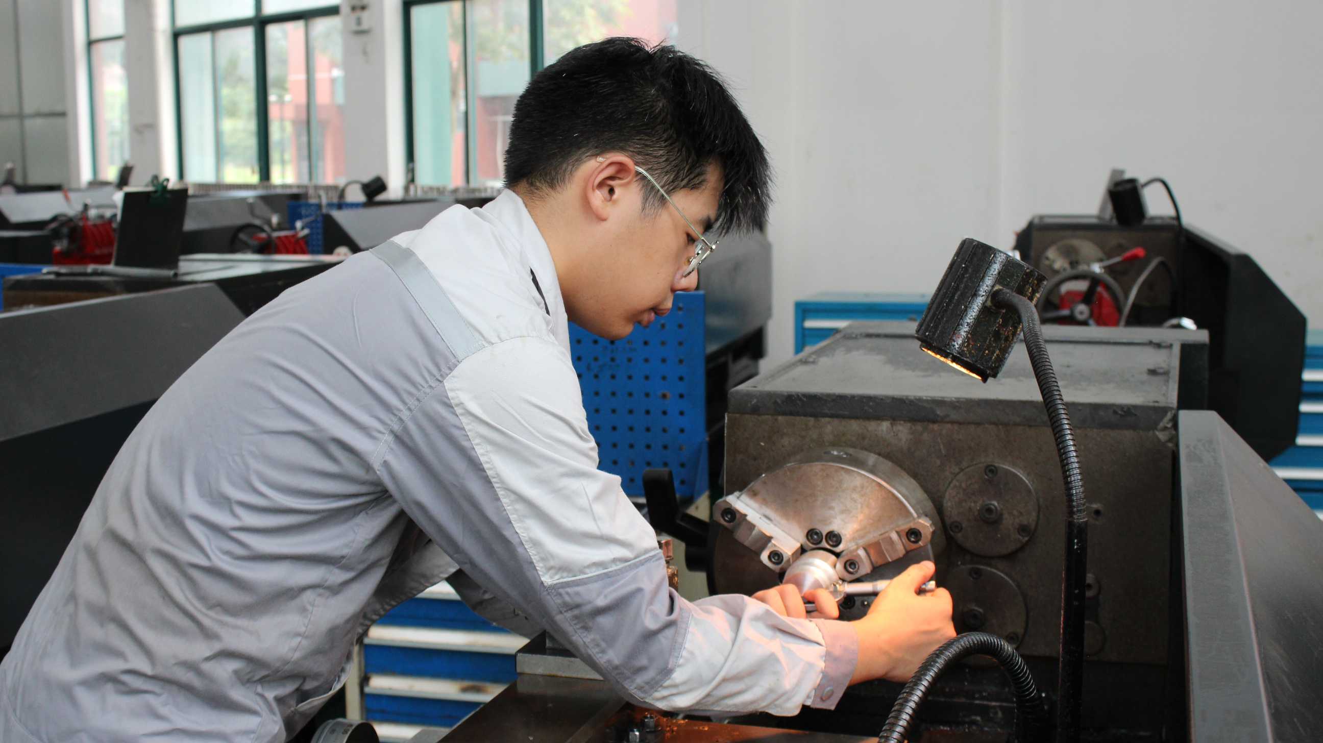 图 3 俞浩彬同学在车床工作的照片