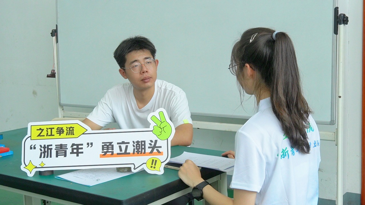 2023年7月15日“青听浙young的声音”暑期社会实践团嘉兴分队前往嘉兴市海宁市海宁技术学院采访了青年学子代表——俞浩彬同学。