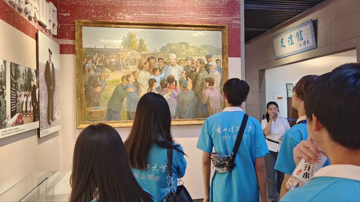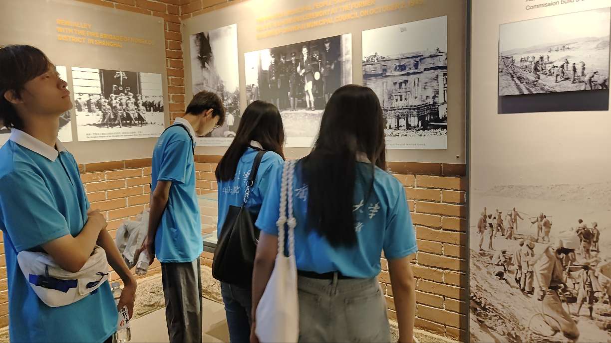 图为实践队员观看艾黎先生生平事迹介绍。通讯员 赵铎