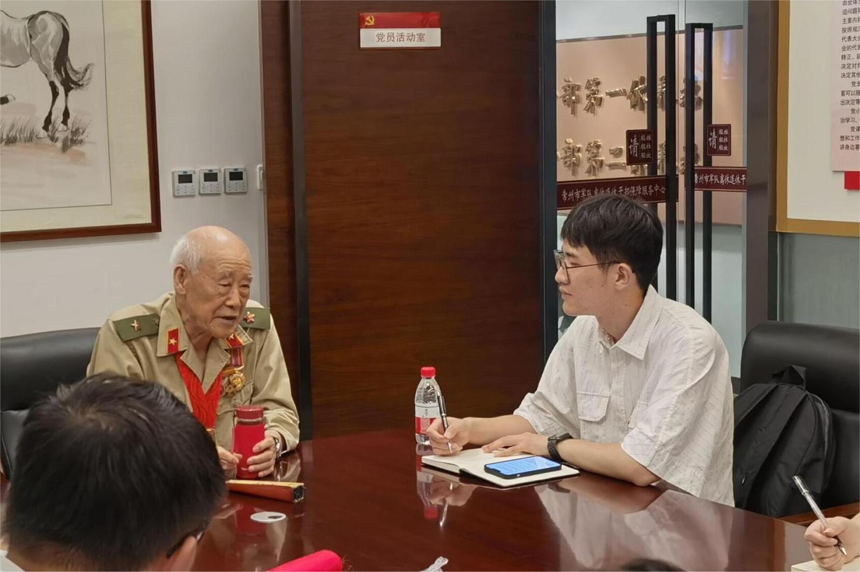 七月,是红色的季节。常州工学院电气信息工程学院‘老吾老及以人之老——红色行“五老情”’暑期社会实践小队走进了常州市军休服务管理中心,采访抗美援朝老兵——王语慈,倾听革命故事,学习红色精神,让红色印记在每个人心中传承。
