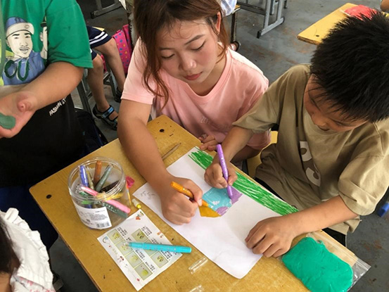 我们为孩子示范绘画,鼓励大家进行绘画,给孩子更多的陪伴和关爱,提升留守儿童心理素质、塑造健全人格,提升孩子智力、审美、艺术等潜能,为孩子的成长注入一份心灵的启迪,帮助孩子提升自己的艺术修养等,改善当地学校因教师资源有限,缺乏素质教育课程等问题。