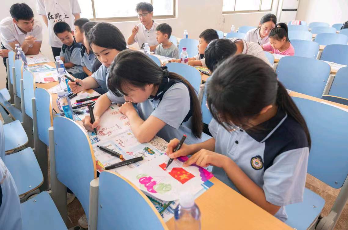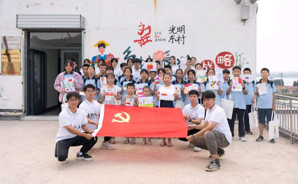 除暑期安全教育外,我们还带领学生们一同学习红色革命精神,朗诵红色诗词《满江红》,当孩子们都积极大声复诵时,听着孩子们铿锵有力的声音,看着孩子们眼中坚定的目光,我仿佛看到了当年满腔热血的岳飞,感受到了一心想报答国家的信心和决心。最后,我们带领孩子们绘制以“‘童’心向党,筑梦未来”为主题的绘画活动,让孩子们绘制出自己心中党的形象,并在乡村文化墙前合照留念。“姐姐,你们下次还来吗?下次来的时候,一定要叫我,我还来听课。”好几个小朋友同时说到,听到这些,我们团队成员都非常开心、非常感动。后期,我们会选出优秀作品在乡村宣传栏处进行展示。
