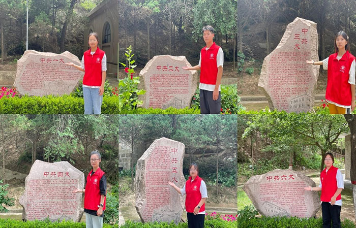 师生一行在中共一大至中共六大纪念碑前回顾峥嵘岁月