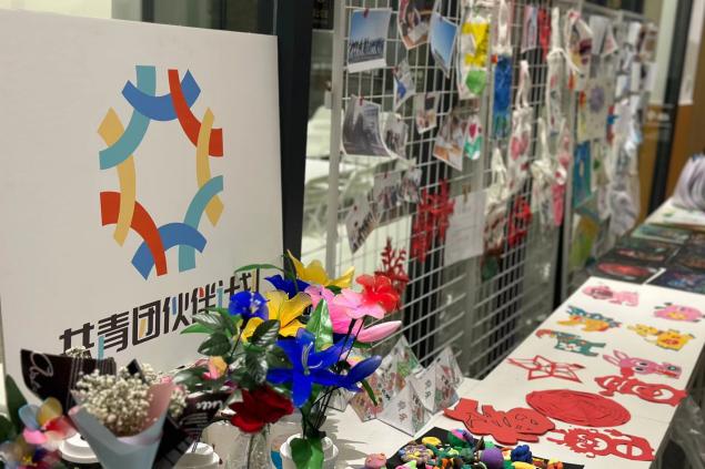 临近上午十一点,负责采购的同学们也终于回来。他们带回的红色纸杯、彩绳和彩纸,今天便会在孩子们的手中变成一个个花灯,用来装点自己心中最美好的节日。手工是我的主场,我教孩子们如何先将一个杯子的杯壁剪开八份后再沿杯沿卷起来,另一个杯子同样剪开后杯壁沿相反方向卷,粘合后再进行装点就成了小花灯的样式了。我本来担心这对一些小学低年级的孩子们有些难度,但看着孩子们互相帮助,相互分享自己的成果,我觉得这就已经是春节最好的礼物。之后,我还教孩子们做了手工花,一起将教室装点成最美的样子。