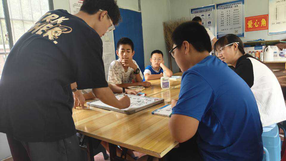 夏日的阳光如同熔金般倾泻而下,将大地染上了一层耀眼的金黄。郁郁葱葱的树木在微风中轻轻摇曳,绿叶间闪烁着细碎的光斑,仿佛是天空洒落的星辰。蝉鸣声此起彼伏,交织成夏日独有的交响乐,热烈而充满活力。远处,一片无垠的稻田泛着绿油油的波光,在微风的吹拂下泛起层层细腻的涟漪,宛如一片绿色的海洋。午后,偶尔飘过几朵悠闲的白云,为这炽热的季节增添了几分宁静与遐想。七月的孙家卫,是那样地热烈、绚烂而又充满生机,让人沉醉不已。这里的学生们也是如此纯粹,他们会早早地来到教室,等候老师的到来;他们会在课前认真预习将要学习的内容,课后及时完成老师布置的作业与任务,在老师们的指导下学会使用思维导图等方式巩固所学;他们会在课堂上认真听讲,积极与老师们互动,思考老师们问的每一个问题;他们也会在课间休息玩耍,劳逸结合。同学们的每一个反应、每一次互动,也都如同一颗颗璀璨的星辰,照亮了我们的支教之路。