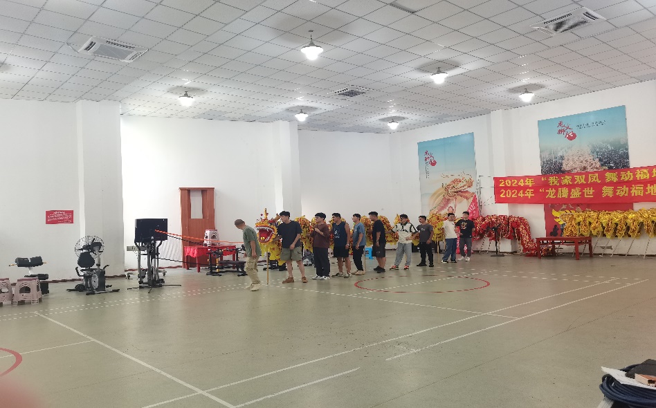 与此同时,苏州市的团队成员们前往了位于苏州太仓市的双凤镇文体馆,对当地的非遗文化——舞龙狮开展实践活动。在到达双凤镇文体馆后,团队受到舞龙狮非遗传承人王永生老师的热情欢迎。在王老师的带领下,实践团队参观了馆内的龙狮馆展厅,并且得到了王老师的详细讲解:龙狮有南狮和北狮的区别,而双凤镇舞龙狮采用的就是北狮,“比起南狮的威风凛凛,北狮就更显得秀气了。”据王老师所说,双凤镇的舞龙狮文化颇有年代,可以追溯至清末太平天国时期,正是曾国藩的湘军将舞狮文化带入双凤的。“当然,双凤的舞龙狮绝不止停留在当地,更是面向全国,面向世界的。”王老师自豪地指着在2008年北京奥运会上演出的一张照片,当时的他担任了其中一条龙的龙头,向全国展示了双凤的舞龙狮文化。在参观的最后,王老师邀请团队成员们一起参与了馆内正在进行的舞龙狮训练,共同感受双凤舞龙狮