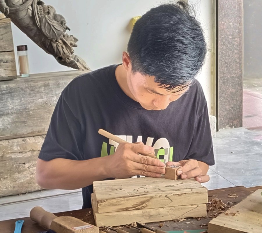 此次雕刻让我深刻感受到了匠人精神的坚韧与执着。要想雕刻出成熟的作品,达到成希或者是郑周正两位老师的雕刻水平,挺膺传承通山木雕技法,我们需要的不仅仅是观摩,更是需要加强木雕日常练习,更遑论成希以及郑周正两位老师能够在雕刻时如鱼得水,技法炉火纯青不仅仅只是依靠天赋,更多的是勤于耕耘,善于钻研。