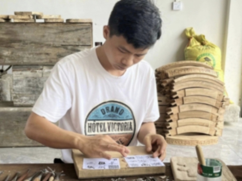 在刚开始收到实践队成员需凭一己之力雕刻印章这一消息的瞬间,我无比震惊且呆若木鸡。对于刚接触并学习通山木雕不到五天时间的新手来说这无异于赶鸭子上架,但随后我的心中无比亢奋,隐隐期待自己能够成功雕刻出精美作品,展现自己能够为非遗文化的传承做出努力的决心。在观摩成希老师的示范后,我便迫不及待以刀代笔,以木为纸,雕刻印章。