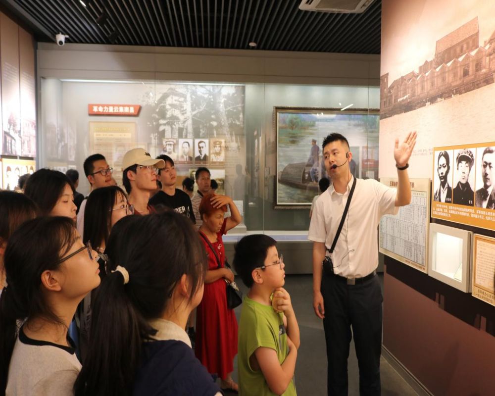 图为八一纪念馆讲解员为志愿者讲解革命历史