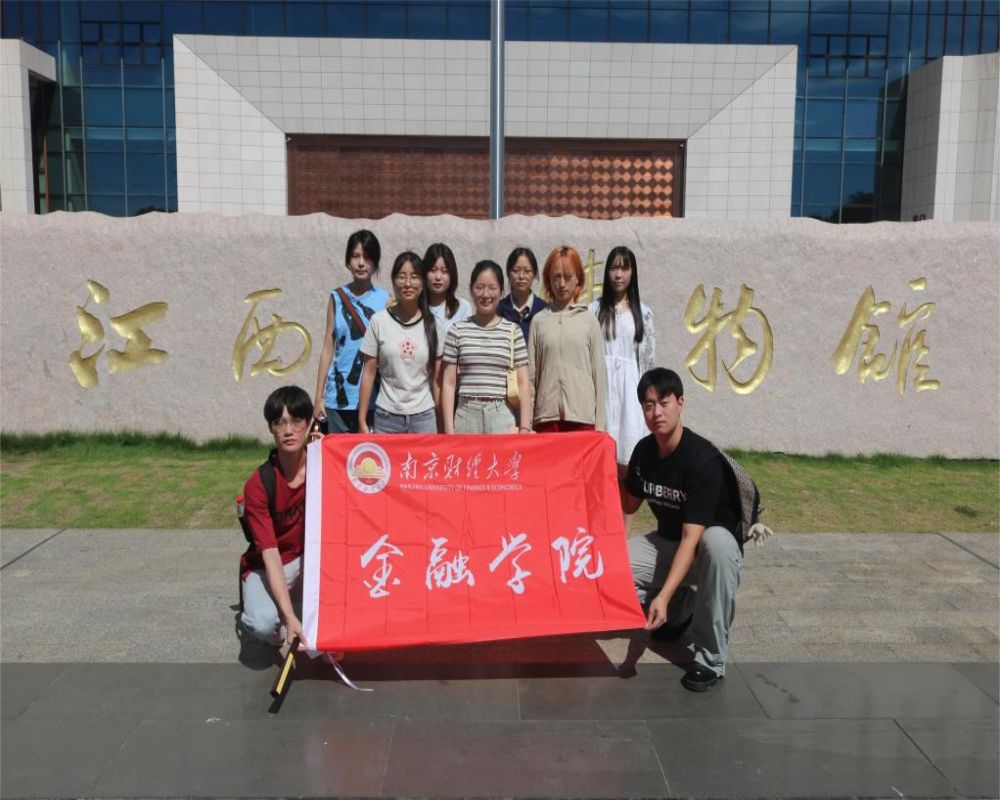 图为南京财经大学金融学院“可乐五班”暑期实践团队成员于江西省博物馆前合照