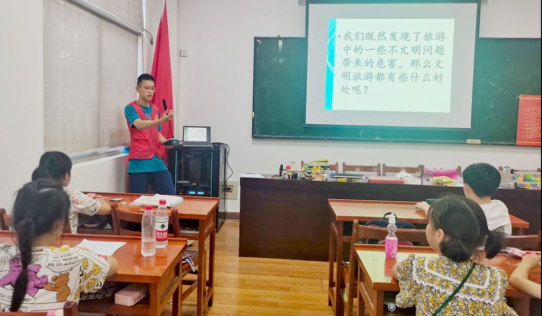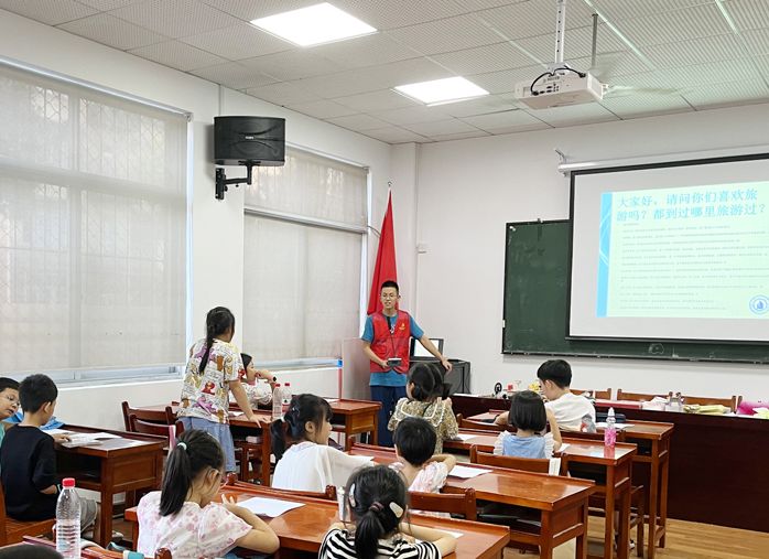 基于此,我回到家乡湖北武汉,及时和社区的工作人员进行了沟通交流,得到了社区的大力支持。于2024年8月14日下午2点,我和武汉市江岸区二七街道预警学院社区的工作人员一起组织社区小朋友们在社区教室举办了一场“文明旅游从我做起,争做文明小使者”专题课。