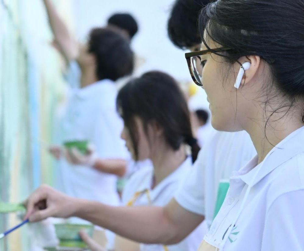 与此同时,墙绘组负责人带领队员们完成墙绘任务,在2米高的脚手架上“以汗调色”。烈日灼烤着脊背,颜料滴进眼睛也无人退场。当“罗仙植橘”的传说在斑驳村墙上苏醒,扛着锄头的老农驻足惊叹:“这画的是咱老祖宗的故事!”艺术不再是悬置的展品,而是村民每日途经的烟火史诗。