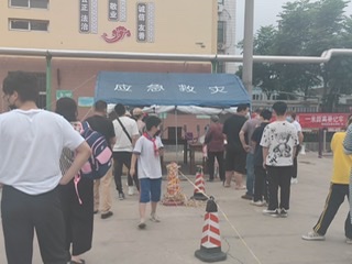 在日常化检测中,早晨便成了最忙碌的时候,同时在早上六、七点时,也是做检测人员最多的时候。志愿者在这时要提醒他们注意拉开距离,不要插队,同时也有序组织学生在一侧绿色通道进行核酸检测,为学生提供便利。