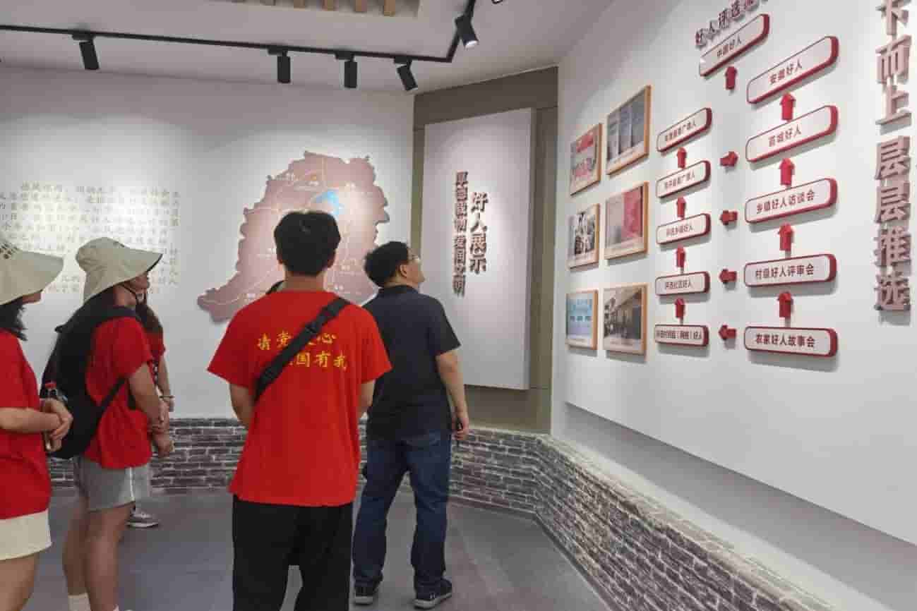 大学生新闻宣城7月6日电(通讯员 陈文杰)为深入调查乡村优良文化对于乡村振兴的积极促进作用。7月6日,安徽工业大学管理科学与工程学院赴宣城社会实践调研团队前往了位于广德市卢村乡唐流村的卢村好人馆进行实地调研,了解当地“好人”推选制度。随后,当地工作人员带领实践队员前往当地的“神枫”树和古韵亭,对当地的乡村文化及居民调解制度进行深入了解。当地“自下而上,层层推进”的好人推选制度和及时处理百姓矛盾的“百姓说事点”等举措使得乡风文明急速发展,唐流村民心汇聚成海,共奏一曲幸福乐章。